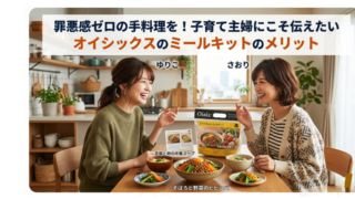 「子育てと仕事の両立に悩む主婦必見!オイシックスのミールキットなら、買い物不要・献立不要で、誰でも20分で栄養満点の食卓が整います。本記事では、時短と安心を両立する秘訣を主婦2人の対話形式で紹介。忙しい毎日を『賢い選択』で変えるヒントが満載です。」