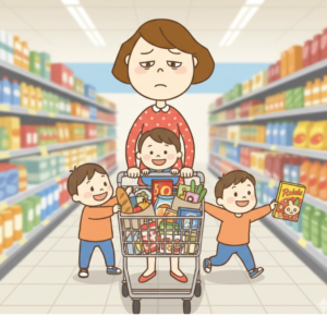 さおりちゃん、もう毎日限界!仕事が終わってから子供を連れてスーパーに行くと、それだけでHPがゼロになるよ。しかも、急いでるからってお惣菜ばかりだと、添加物とか栄養バランスが気になって罪悪感がすごいの……。